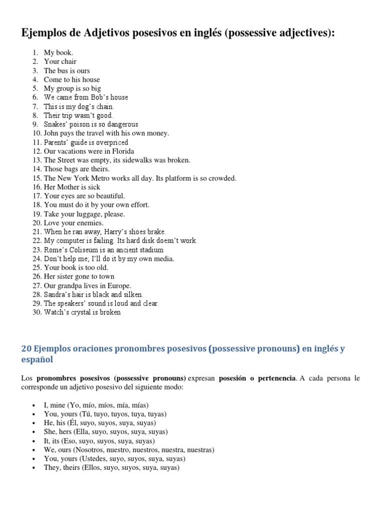 Ejemplos de oraciones con possessive adjectives. The bus is ours. My house is nearby Mi casa. Ejemplos de Adjetivos posesivos en inglés possessive adjectives.