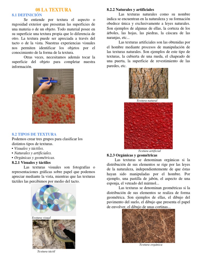 Las Texturas 1 Definici Pound Acirc Euro Oelig N La Textura Visual O Gr Pound Oelig Fica 2 Las Texturas Son Junto Con El Color Pdf Document
