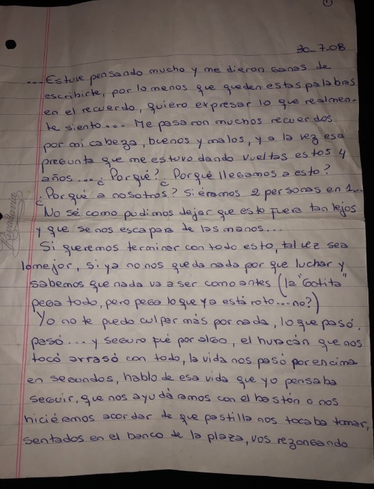 Aunque esta sea una carta de despedida yo no lo considero porque no quiero hacerlo y porque creo que decirte adiós para mí es algo imposible. Mi punto de inflexión.