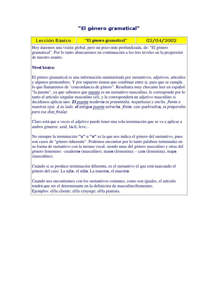 El Genero Cal Genero Gramatical Sustantivo