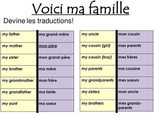 Names Of Family Members In French