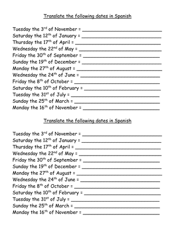 Dates Translate To Spanish