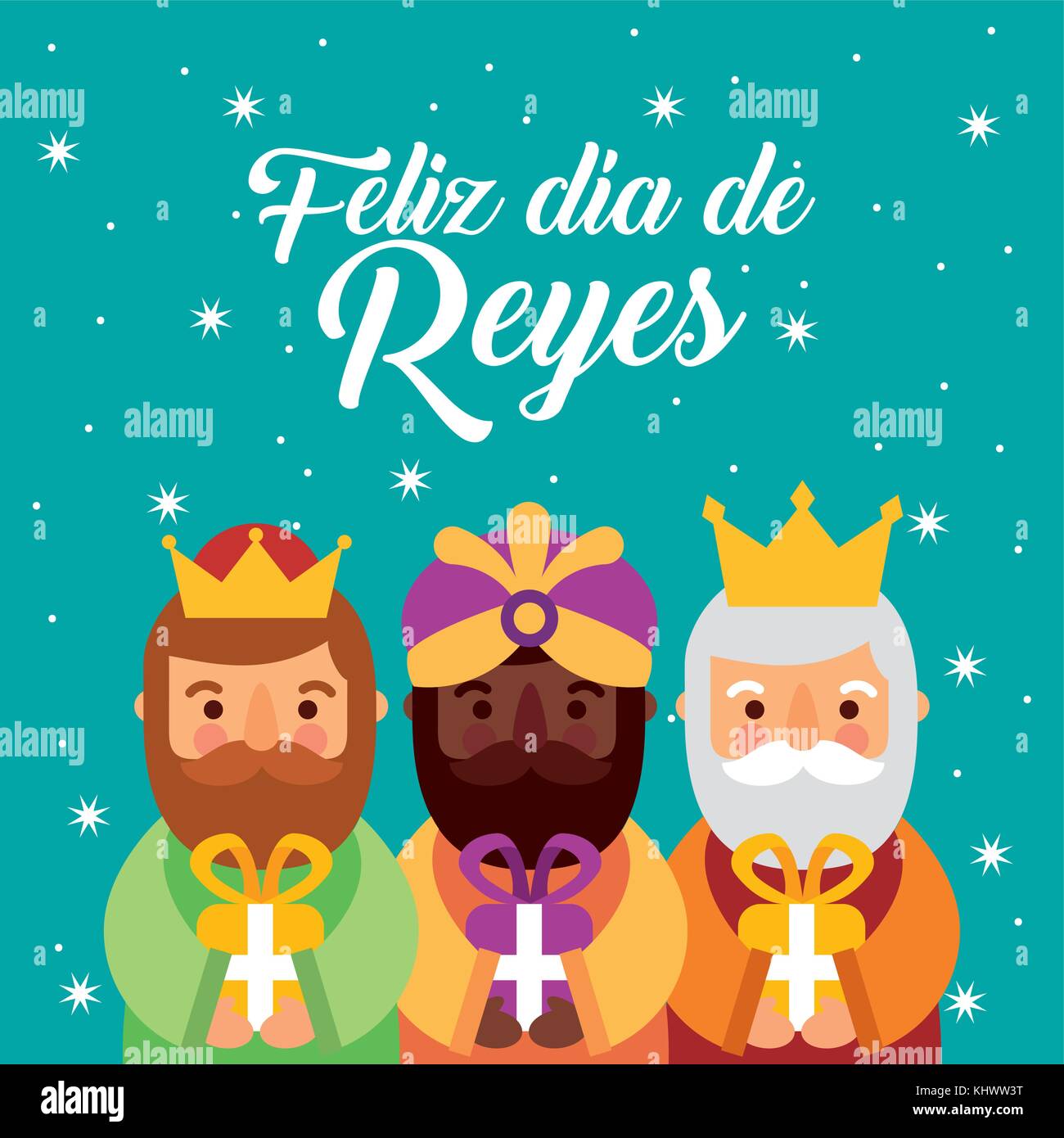 Feliz Dia De Los Reyes Three Magic Kings Bring Presents To Jesus Stock Vector Image Art Alamy