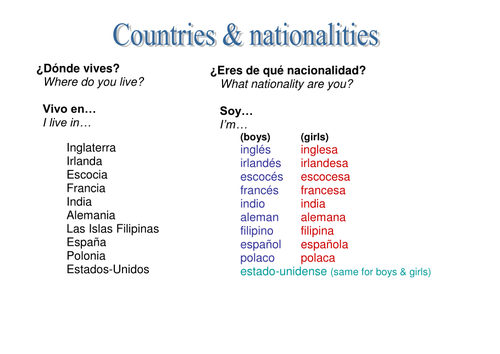 Inglaterra nationality in spanish. Adjetive of Nationality. This Spanish nationalities list will be extremely useful when speaking Spanish as you are bound to meet or. Nationalities in Spanish are often talked about using nationality adjectives which are adjectives that describe the country a person or thing is from.