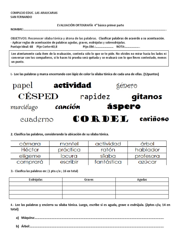 Evaluacion Palabras Agudas Graves Esdrujulas Pdf