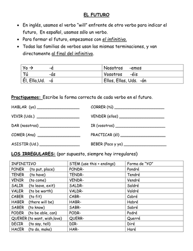 El futuro spanish practice. Spanish Future Tense Practice Práctica del futuro en español. Write ten sentences using the future tense. Expresiones del futuro Future expressions.