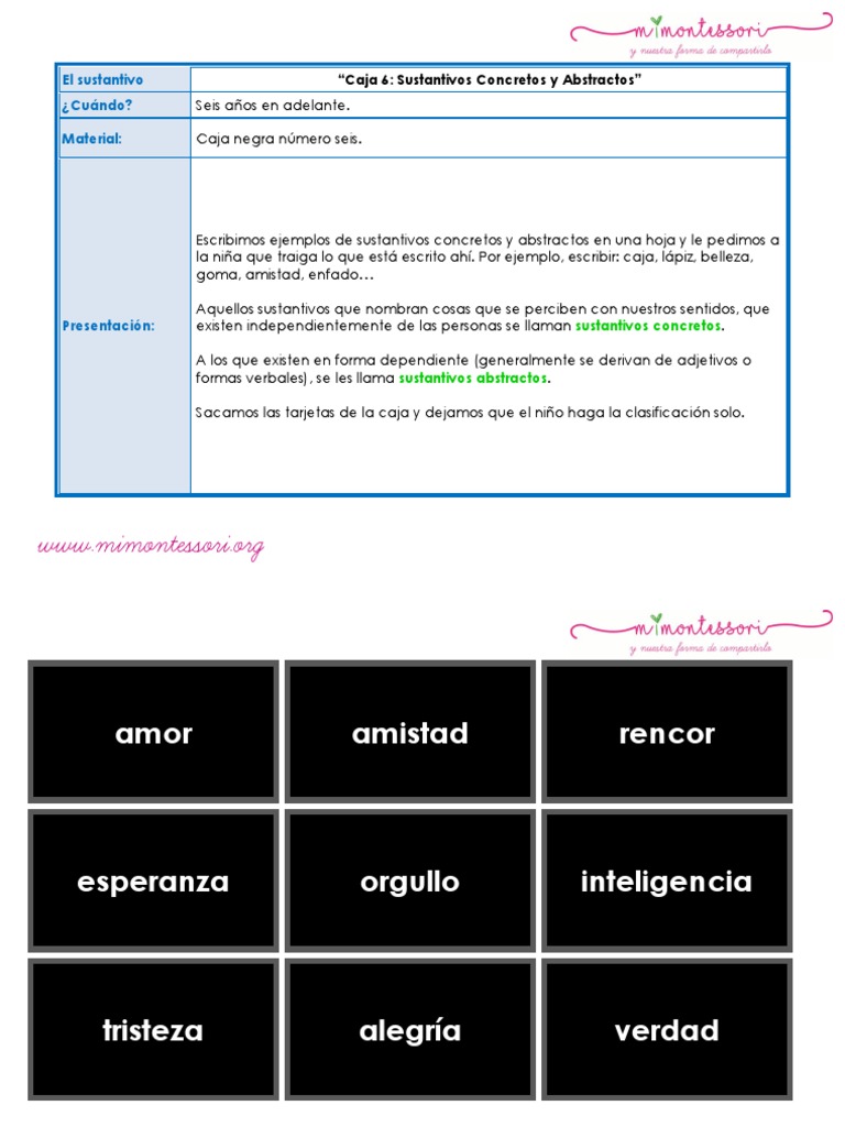 Caja 6 Sustantivos Concretos Y Abstractos Letra Imprenta Pdf