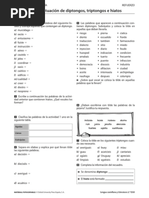 Ejercicios sobre los diptongos e hiatos en español. ARCHIVOS EN FORMATO PDF.