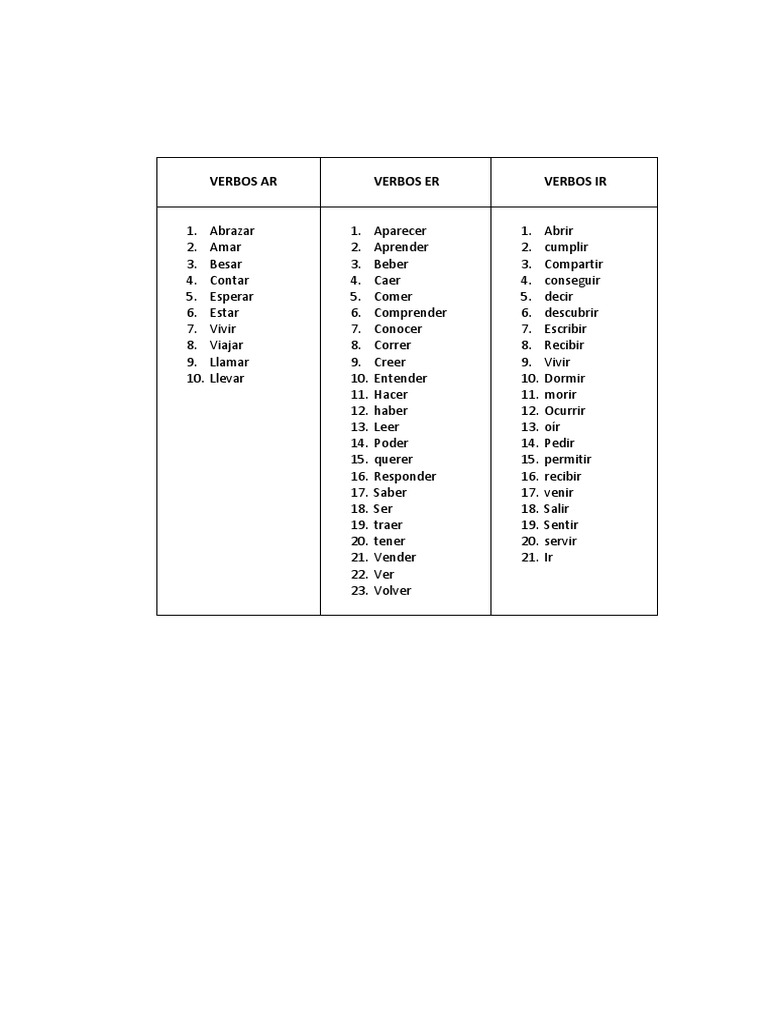 100 Verbos Mas Comunes Verbos Ar Er Ir Pdf