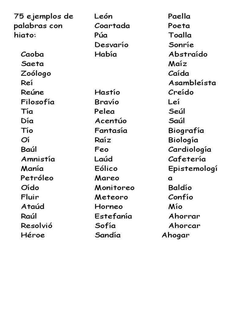 75 Ejemplos De Palabras Con Hiato Pdf Voz Humana Linguistica