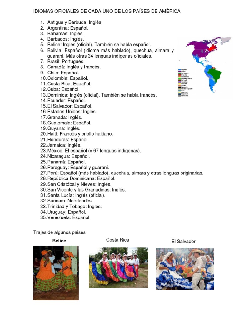 Idiomas Oficiales De Cada Uno De Los Paises De America