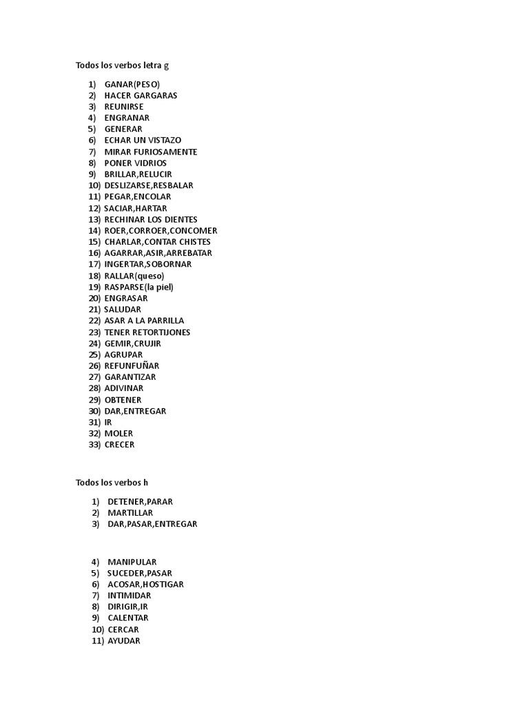 Verbos En Ingles Con G