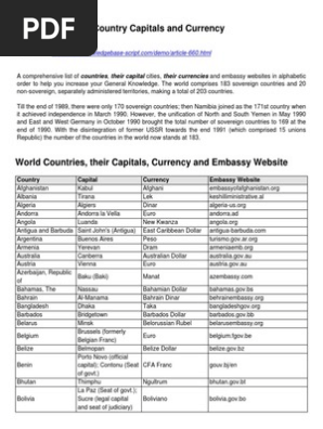 World Countries Country Capitals And Currency All At On Eplace Pdf Notes Finance Currency
