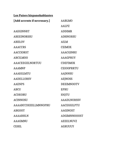 Paises Hispanohablantes Spanish Speaking Countries Word Scramble Teaching Resources