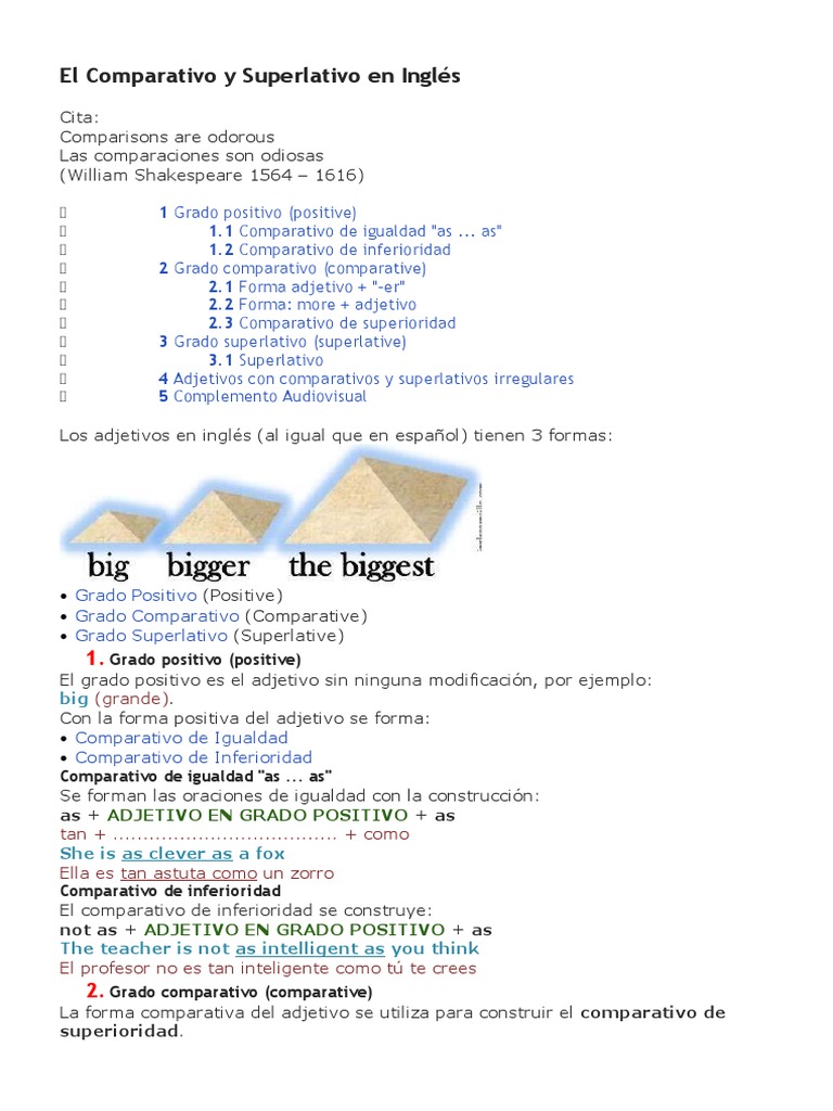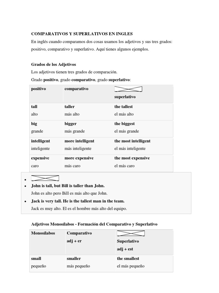 Comparativos Y Superlativos En Ingles Pdf Estilo Ficcion Gramatica